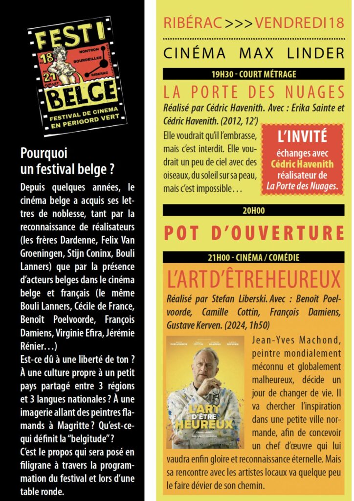 Du cinéma, des émissions de TV, des animations, des documentaires, une exposition le tout à la sauce belge. L’édition zéro du Festibelge 24 se déroulera à Ribérac, Bourdeilles et Nontron du 18 au 21 juillet. Des frites, de la bière et de la musique…